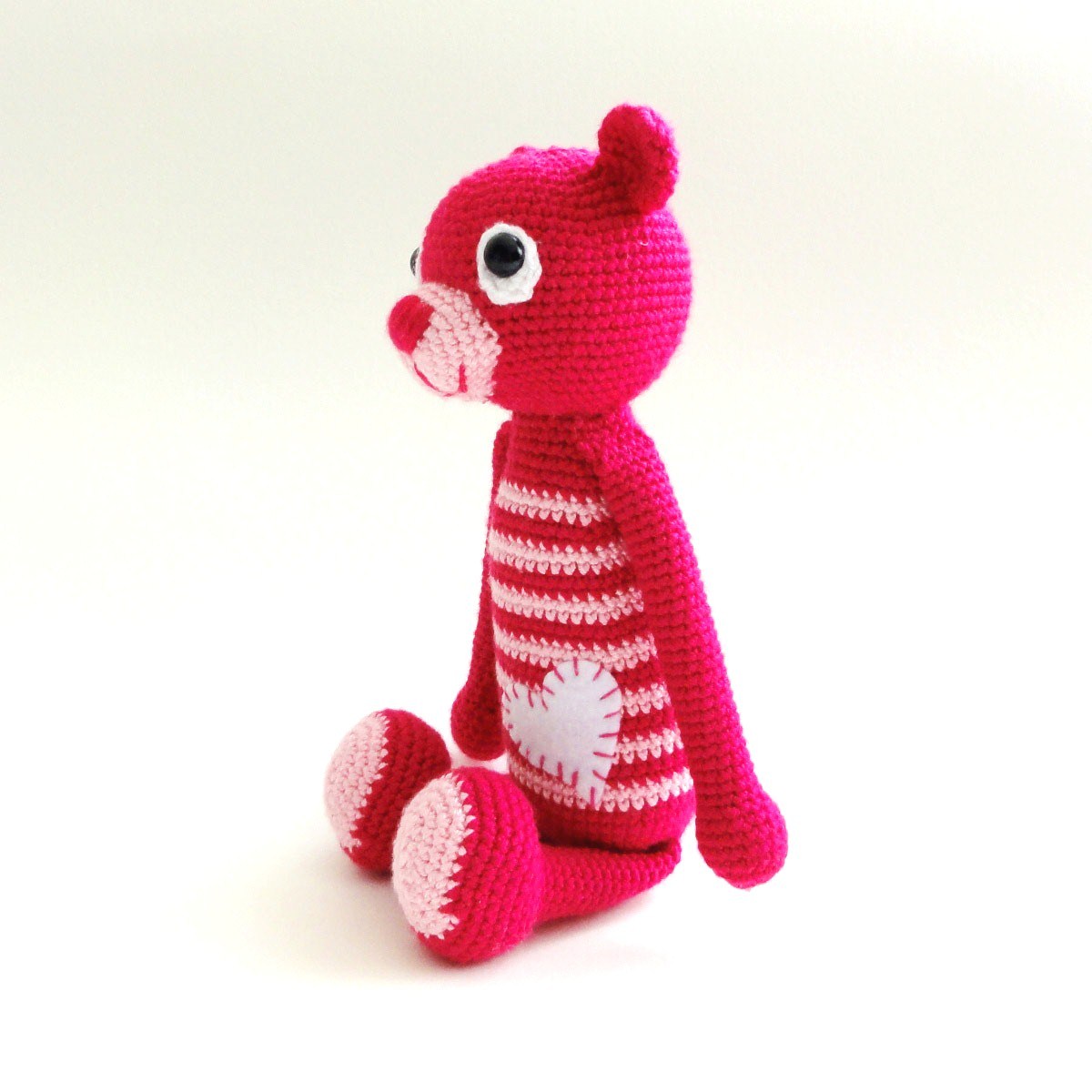 Hotová hračka měří cca 27 cm (růžový medvídek).
