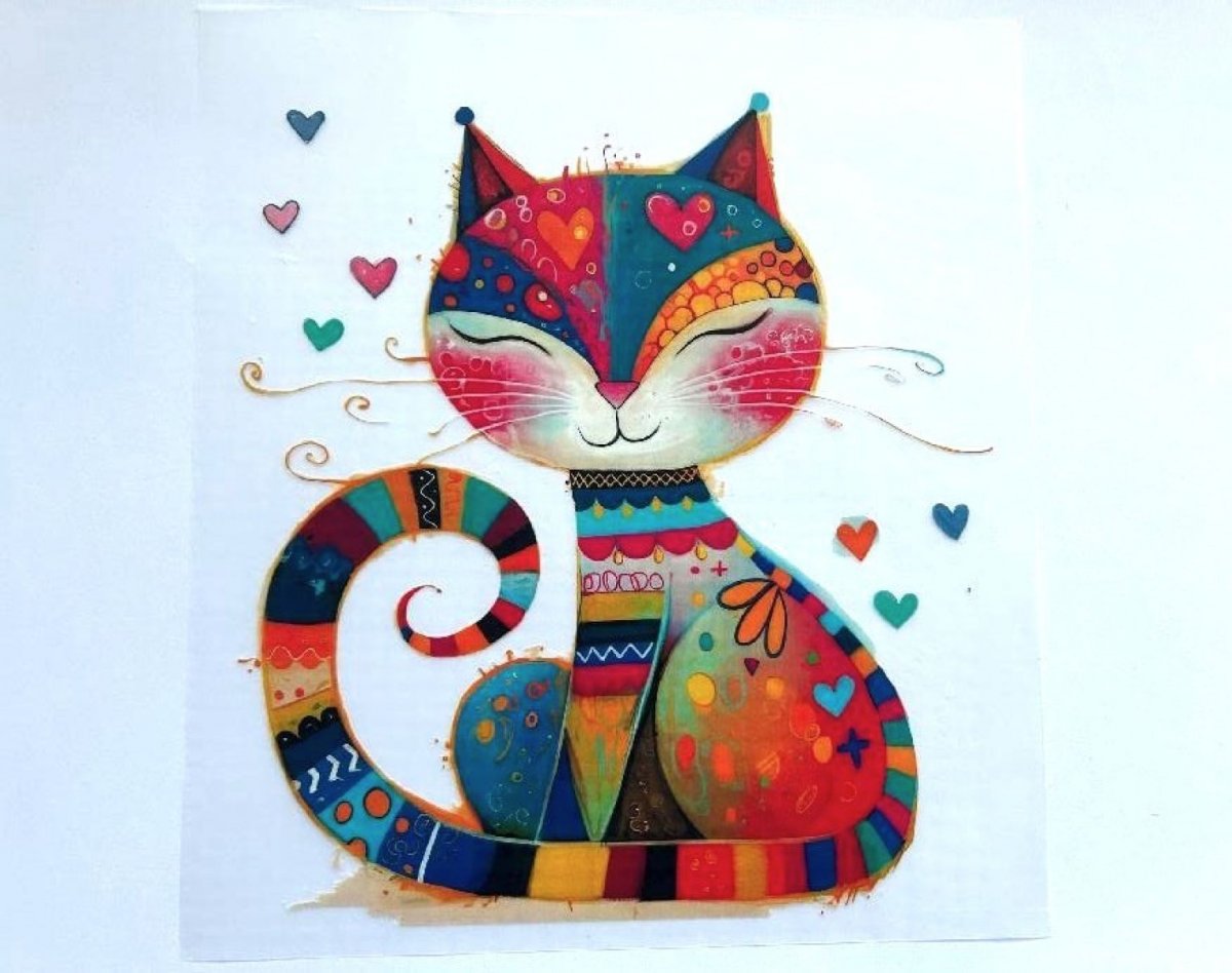 Nažehlovací aplikace s motivy koček jsou vhodné na oblečení, tašky, polštáře apod. Žehlení po rubové straně látky.