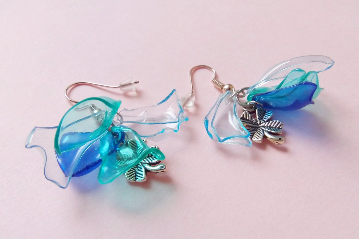 Ručně vyrobeno dle vlastního návrhu z recyklovaných PET lahví a bižuterních komponentů.