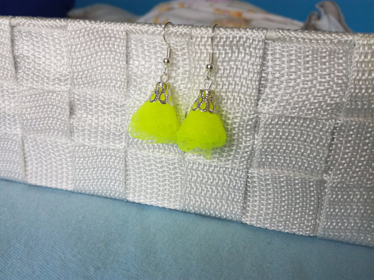 Vyrobeno z organzy. Náušnice jsou doplněny zarážkou proti ztrátě. Délka náušnic je cca 5 cm včetně afroháčku.