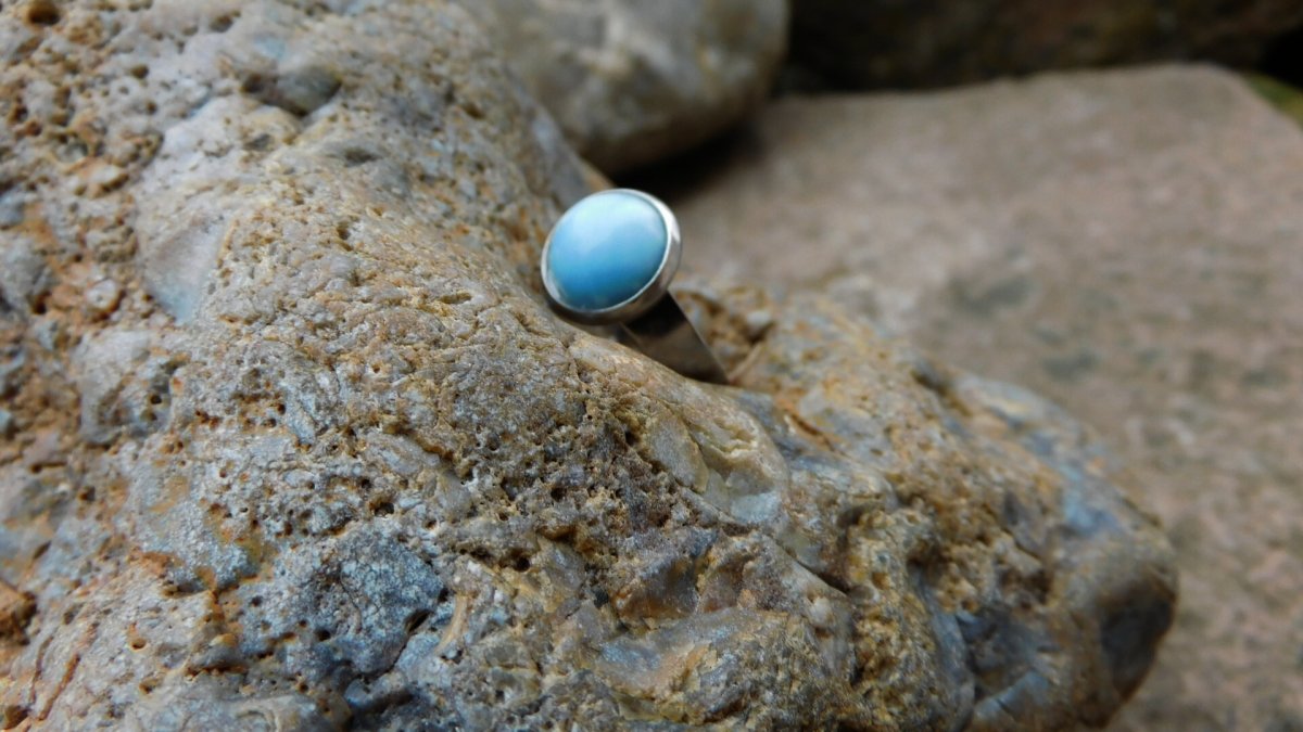 Krásný nerezový prstýnek s modravým kamenem larimarem