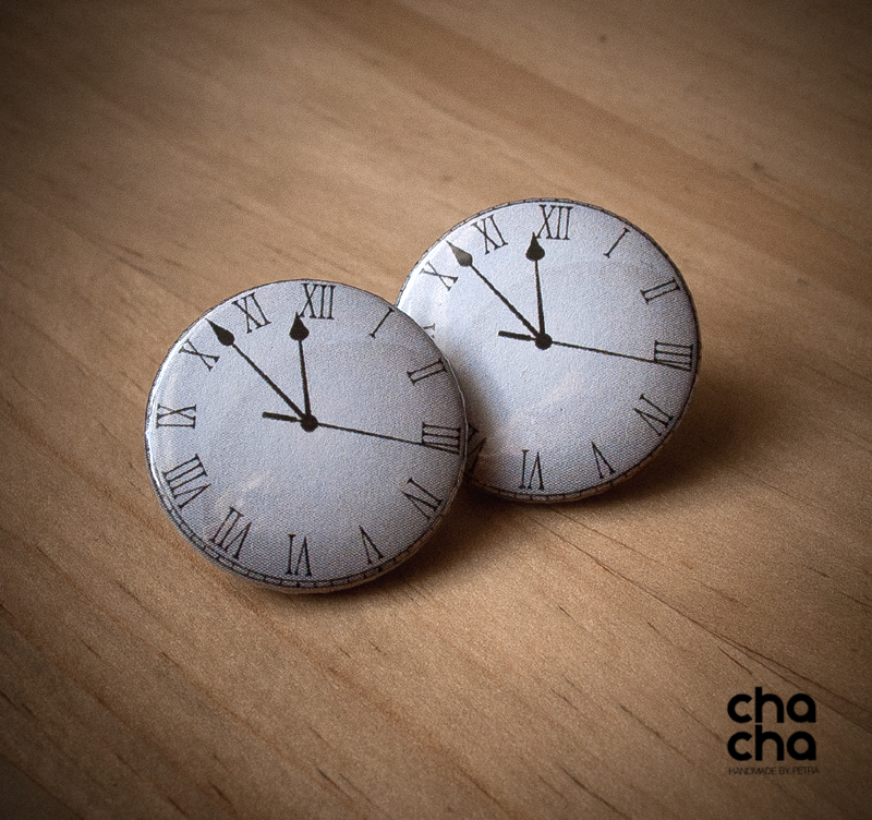 Náušnice jsou vyrobeny z buttonů o průměru 25 mm. Grafický motiv je chráněn lesklou fólií. Puzety jsou přilepeny kvalitním dvousložkovým lepidlem. K náušnicím jsou i plastové zarážky.