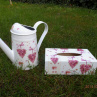 Sada-konev+kapesníkovník.Konev výška 24cm objem 2,6l.Galvanizováno,zaručuje ochranu proti korozi.Kapesníkovník materiál překližka.Barveno hrubou lazurovací barvou+ akrylovou barvou+lakováno,vše vodou ředitelné.Splňuje EN 71 pro nátěry dětských hraček.Konev je jak na zalévání tak i na dekoraci.