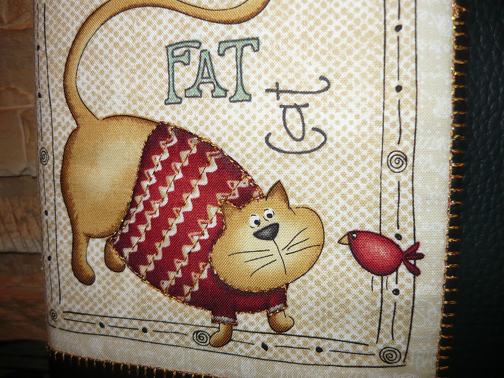 Panel kočičáka je obšitý zlatou metalickou nití a zpevněný ronarem.