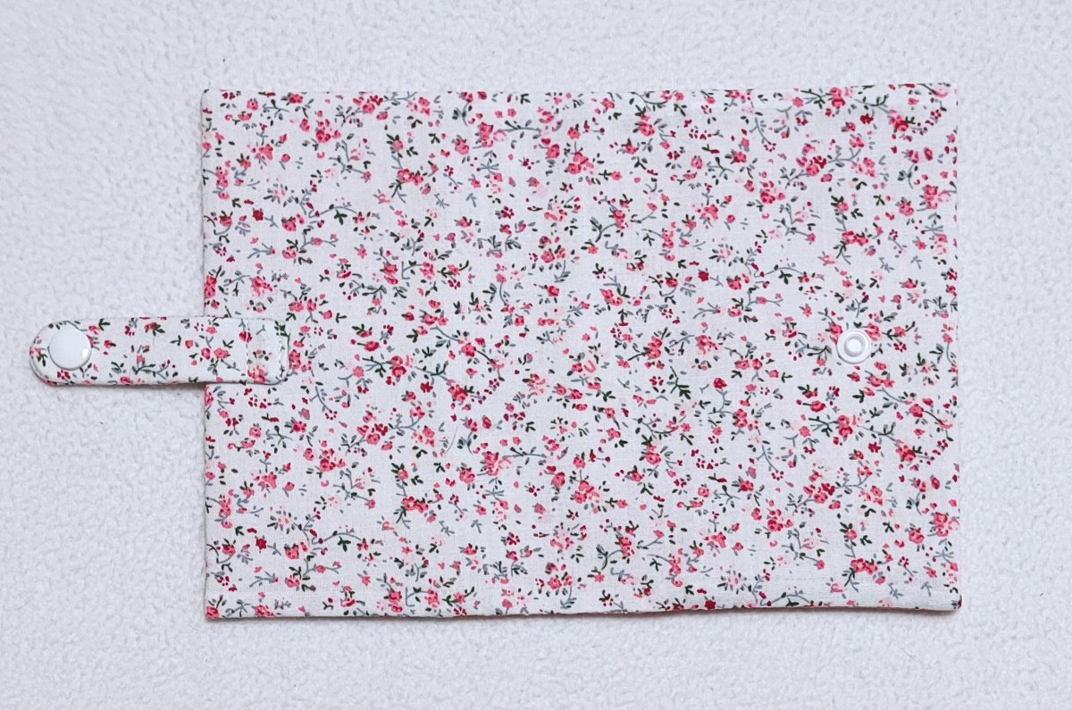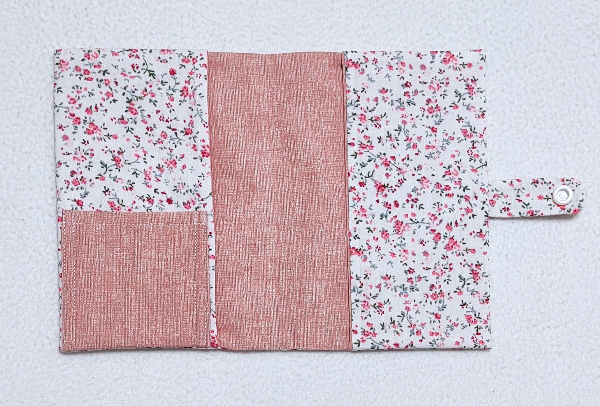 Obal o velikosti A6 je ušitý z bavlněných látek. Vnější strana je vyztužena vliselinem.