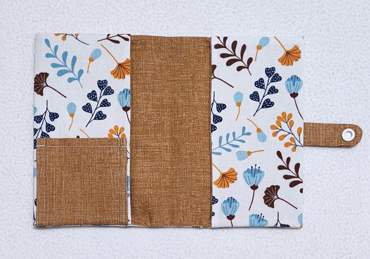 Obal o velikosti A6 je ušitý z bavlněných látek. Vnější strana je vyztužena vliselinem.