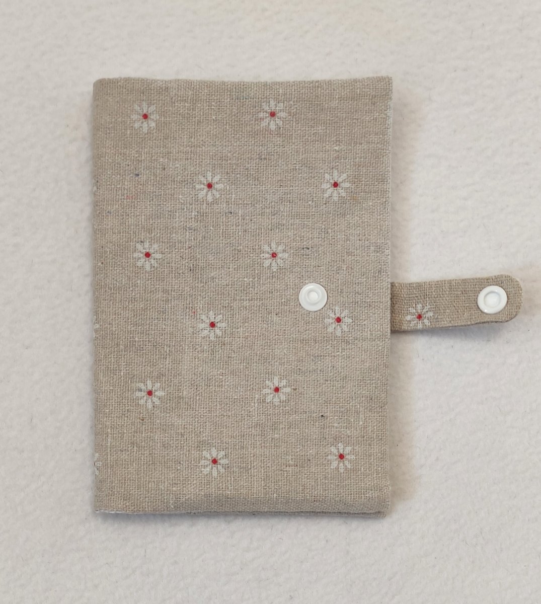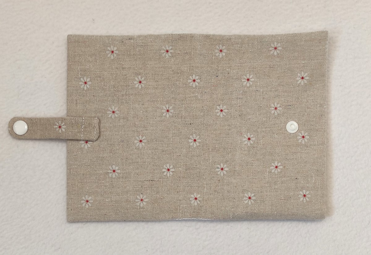 Obal o velikosti A6 je ušitý z bavlněných látek. Vnější strana je vyztužena vliselinem.