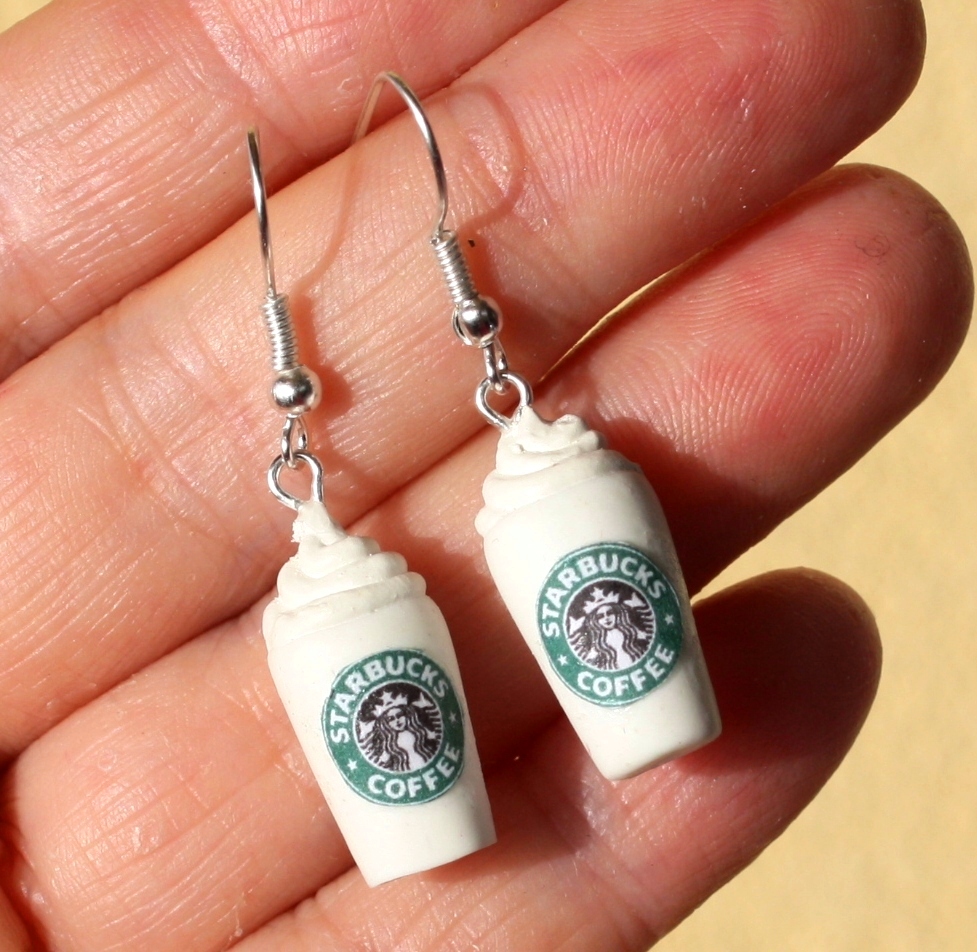 náušničky z polymerové hmoty, s motivem oblíbené kávy,
