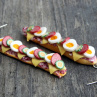 Obložená bagetka se zelnou pomazánkou je obložena sýrem a salámem, dozdobena vajíčkem a okurkou.