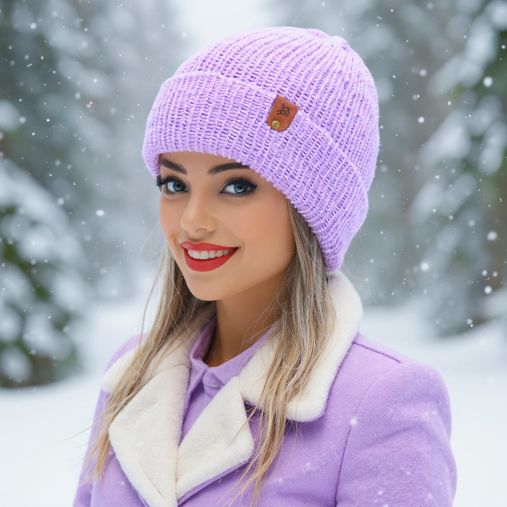 Pletená bezešvá čepice v UNI velikosti z velmi příjemné a jemné akrylové příze v barvě lila