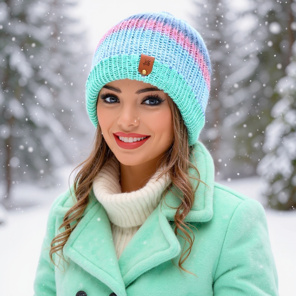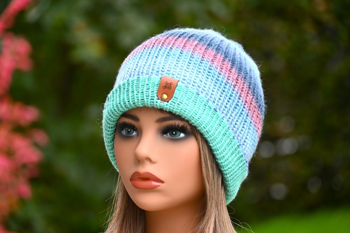 Čepice z jedné strany barevný proužek, z druhé mentolka