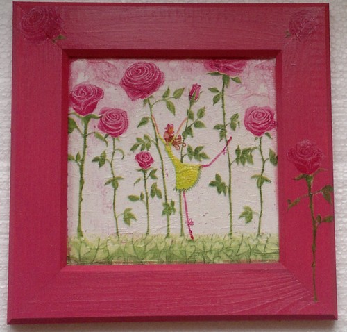 Obrázek je namalovaný akrylovými barvami a ozdobený technikou decoupage ubrouskem.