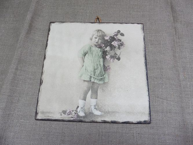 Obrázek zdoben technikou decoupage velikost 16x16cm. Podklad sololitová destička.