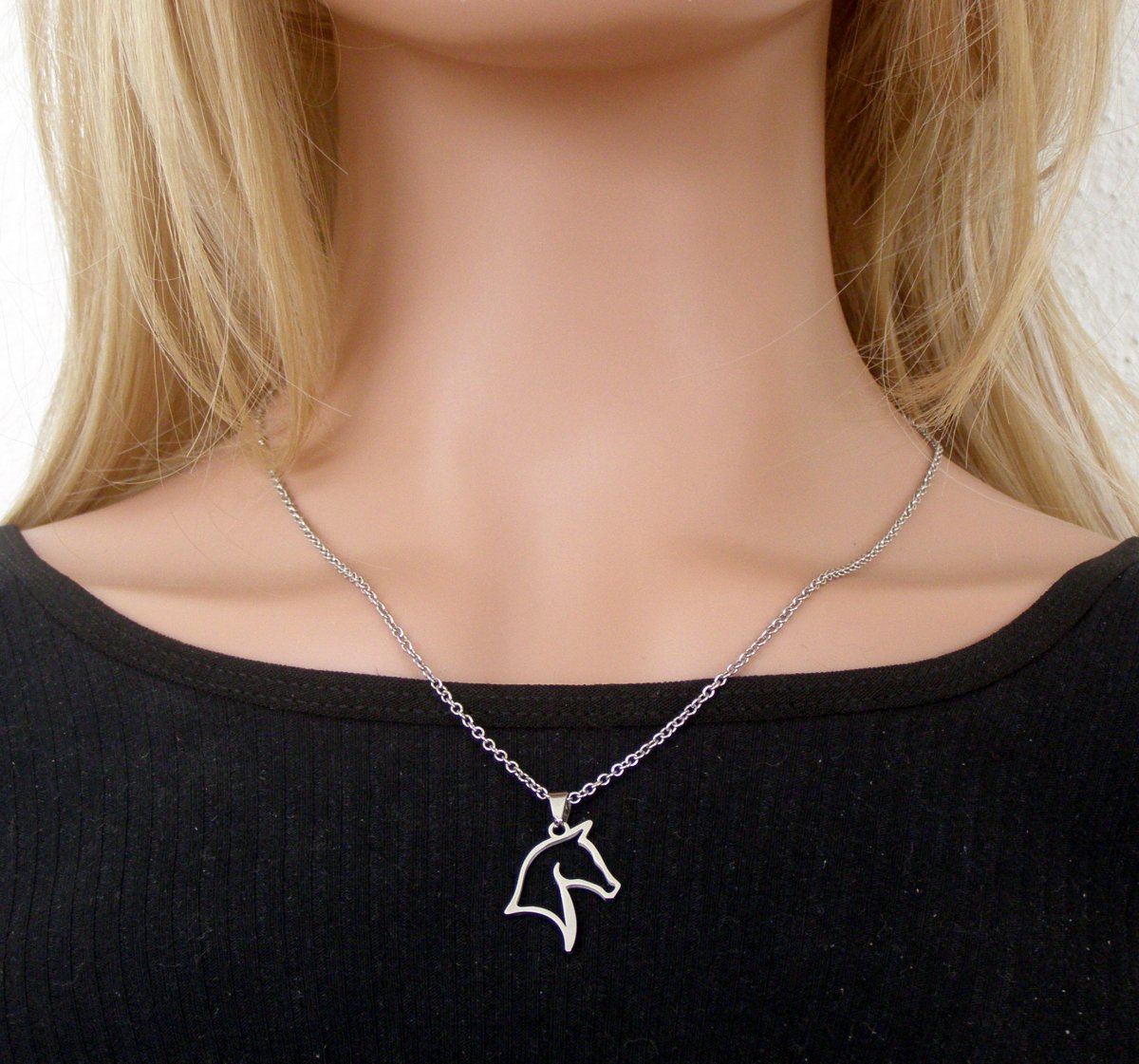Náhrdelník je vyroben z řetízku z chir. oceli a přívěsku s obrysem hlavy koně.