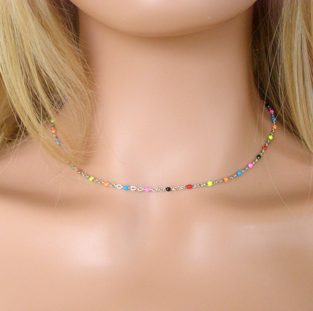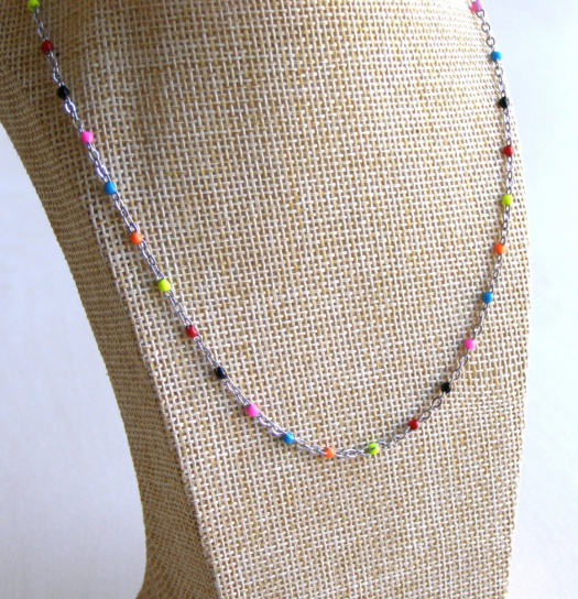 Náhrdelník z chir. oceli s drobnými, smaltovanými korálky.