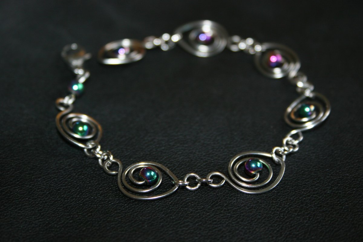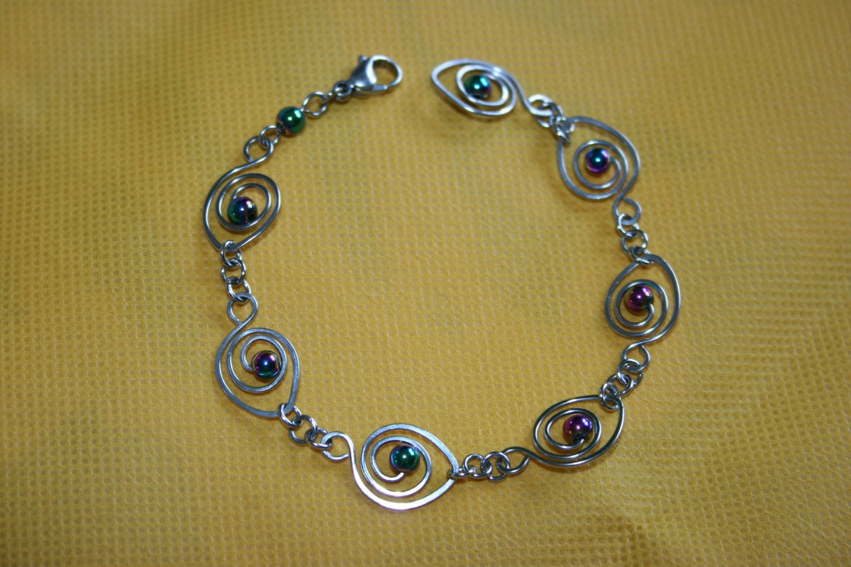 Náramek s Hematitem je ručně tepaný z leštěné chirurgické oceli .