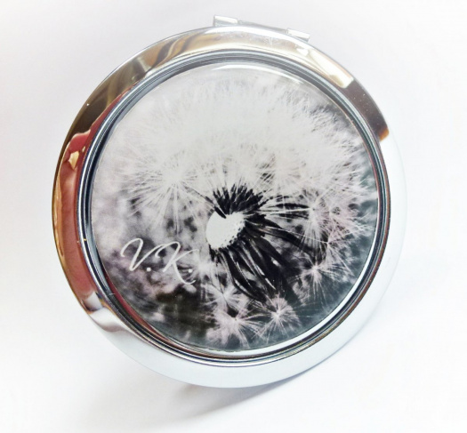 zrcátko, pampeliška, chmýří, černobílé, svatba, svatební, wedding, družička, svědkyně, svatební maminka, host, nevěsta, poděkování, dárek, text na přání, jméno, iniciály, monogram, věnování, milé, praktické, elegantní, jemné,