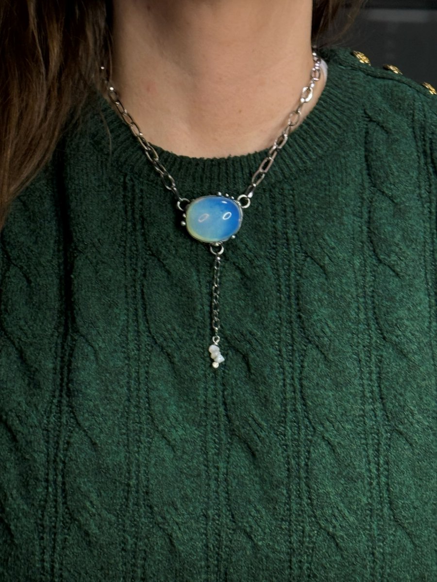 Náhrdelník z OPALITU na řetízku z chirurgické oceli s drobnými minerály růženínu.
