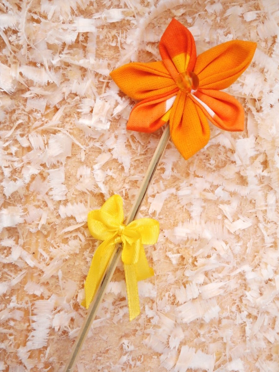Ušité jsou ze 100% bavlněné látky.Velikost květu cca 5,5 cm,dozdobené drobounkou mašličkou.Celková velikost cca 26 cm.