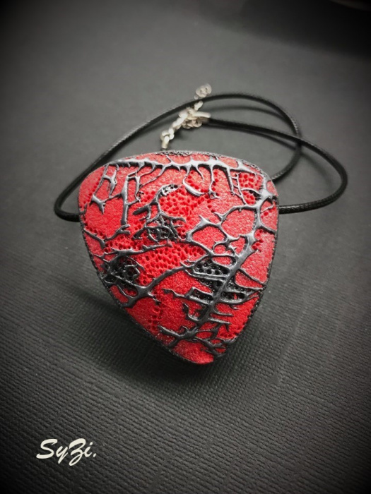 červený náhrdelník o velikosti cca 5,5 x 3cm je