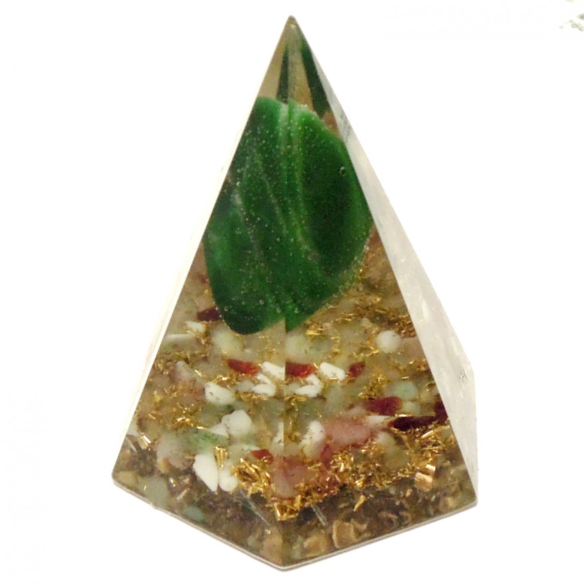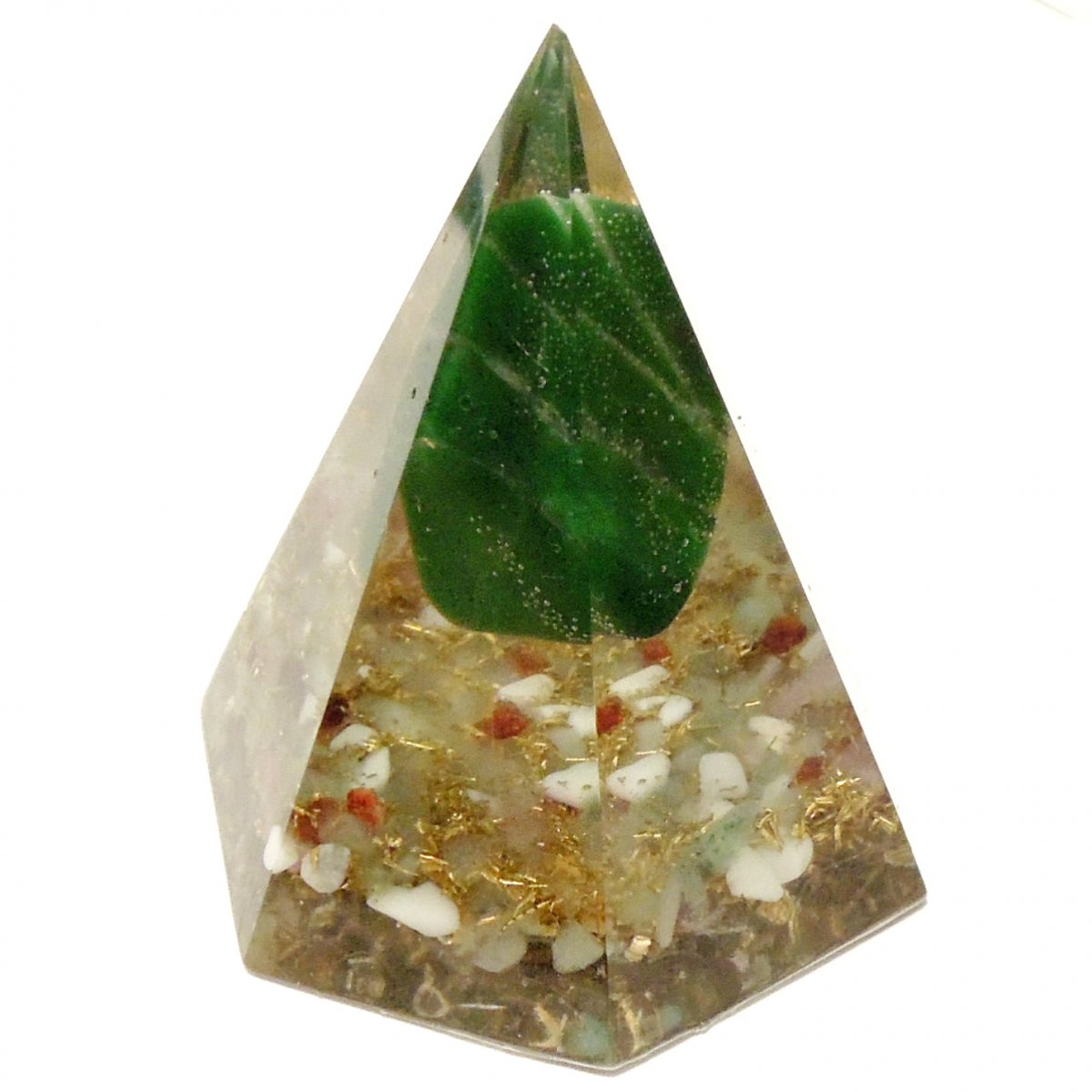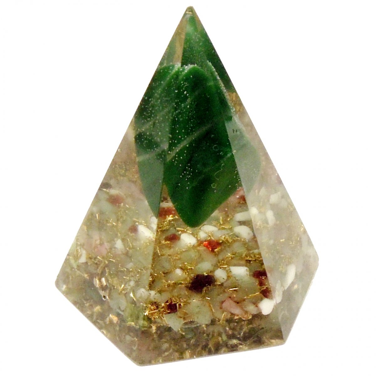 Křišťál: Orgonit, v němž je zalitý křišťál, vykazuje dvojnásobnou i podstatně větší účinnost. Křišťál je nejúčinnější a nejuniverzálnější krystal, jenž silně zesiluje energii, pohlcuje, uvolňuje a reguluje ji a uvádí ji do absolutní harmonie. Povzbuzuje, jasnozřivost. Pomáhá sebezdokonalení. Ochraňuje před vším zlým a negativním. Zvyšuje naše duchovní síly. Harmonizuje, čistí a chrání auru. Je vhodný pro meditace. Křišťál je vhodný na všechny zdravotní problémy, včetně problémů duše. Tiší bolesti hlavy a zubů, neurologické a střevní potíže, nevolnosti, podporuje zažívací trakt, posiluje imunitu, uvádí tělo do rovnováhy, zvyšuje laktaci.
