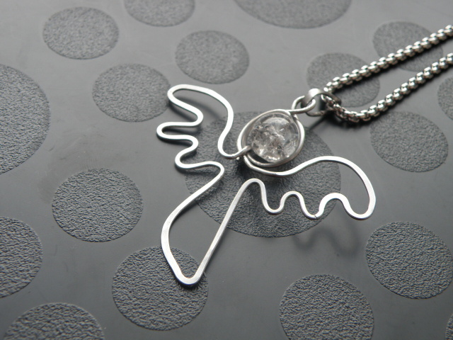 Přívěšek - andílek z chirurgické oceli., hlavička je kulička křišťálu vel. 10 mm ..............tepaný. Dodáván bez kůže a řetízku.