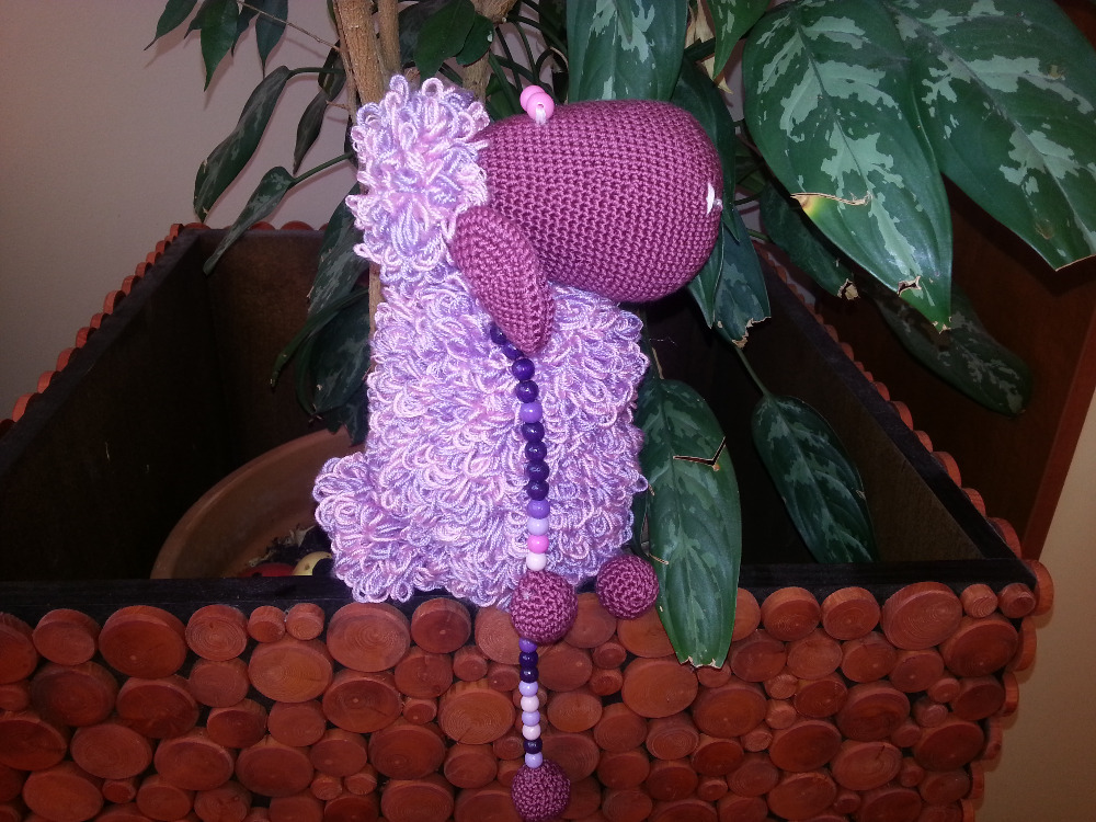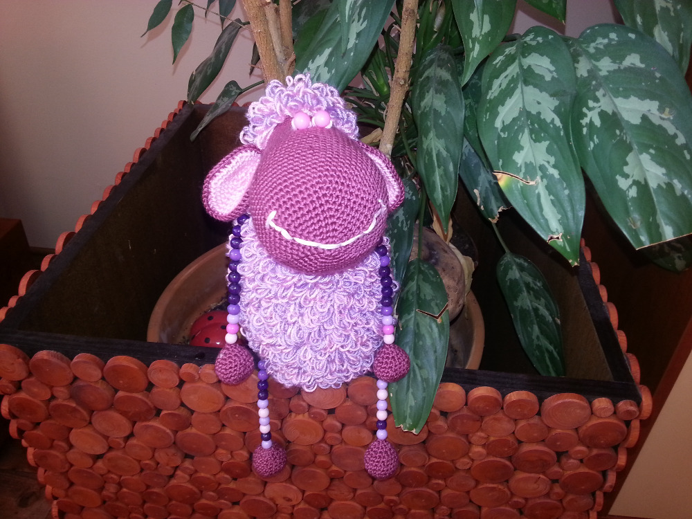 Nabízím autorský návod na háčkovanou ovečku Fialku ze 100% akrylu. Měří 30 cm i s nožičkami, vyplněná dutým vláknem a ozdobena dřevěnými korálky.