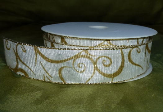 Ozdobná stuha se zlatými ornamenty šíře 25 mm s drátem.