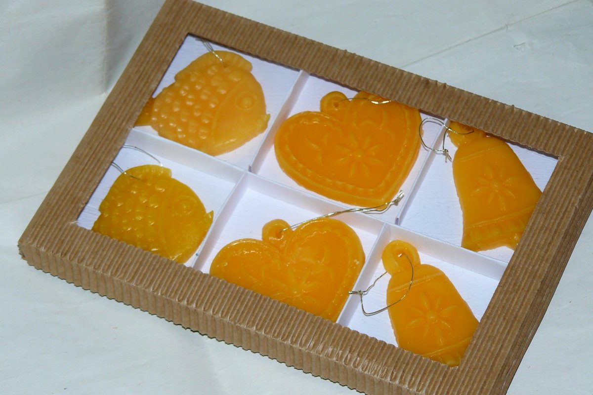 ozdoby na zavěšení 6 ks, parafín, barva žlutá