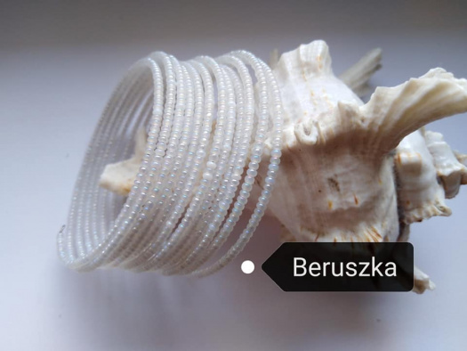 Náramek z pamětóvého drátu a českého rokajlu Preciosa. Náramek tvoří