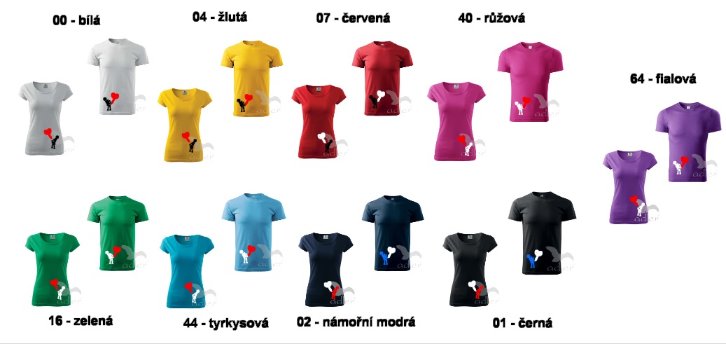 Chcete něco originálního a neotřelého? Pořiďte sobě i své drahé polovičce speciální partnerské tričko! Uvedené motivy jsou aplikovány na kvalitní bavlněná trička od firmy Adler v široké škále barev a velikostí - viz. přiložené vzorníky.