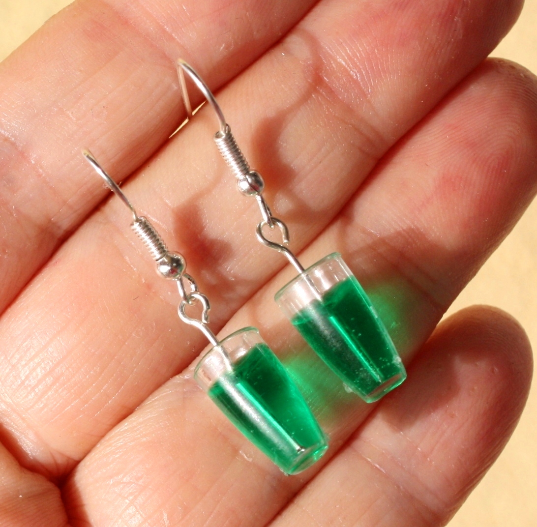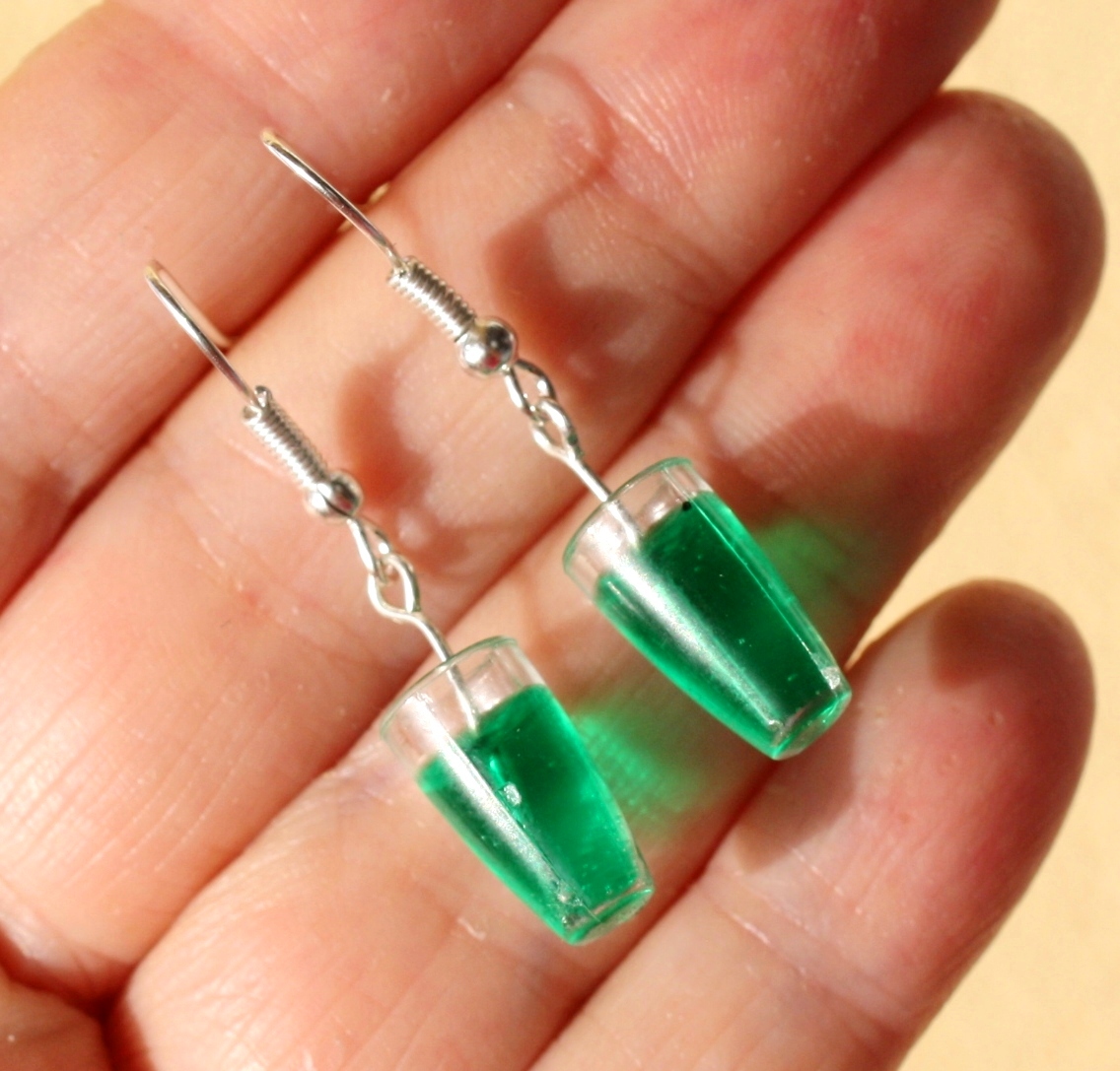 plněno křišťálovou pryskyřicí, skleničky umělohmotné, náušničky jsou velmi lehounké :-)