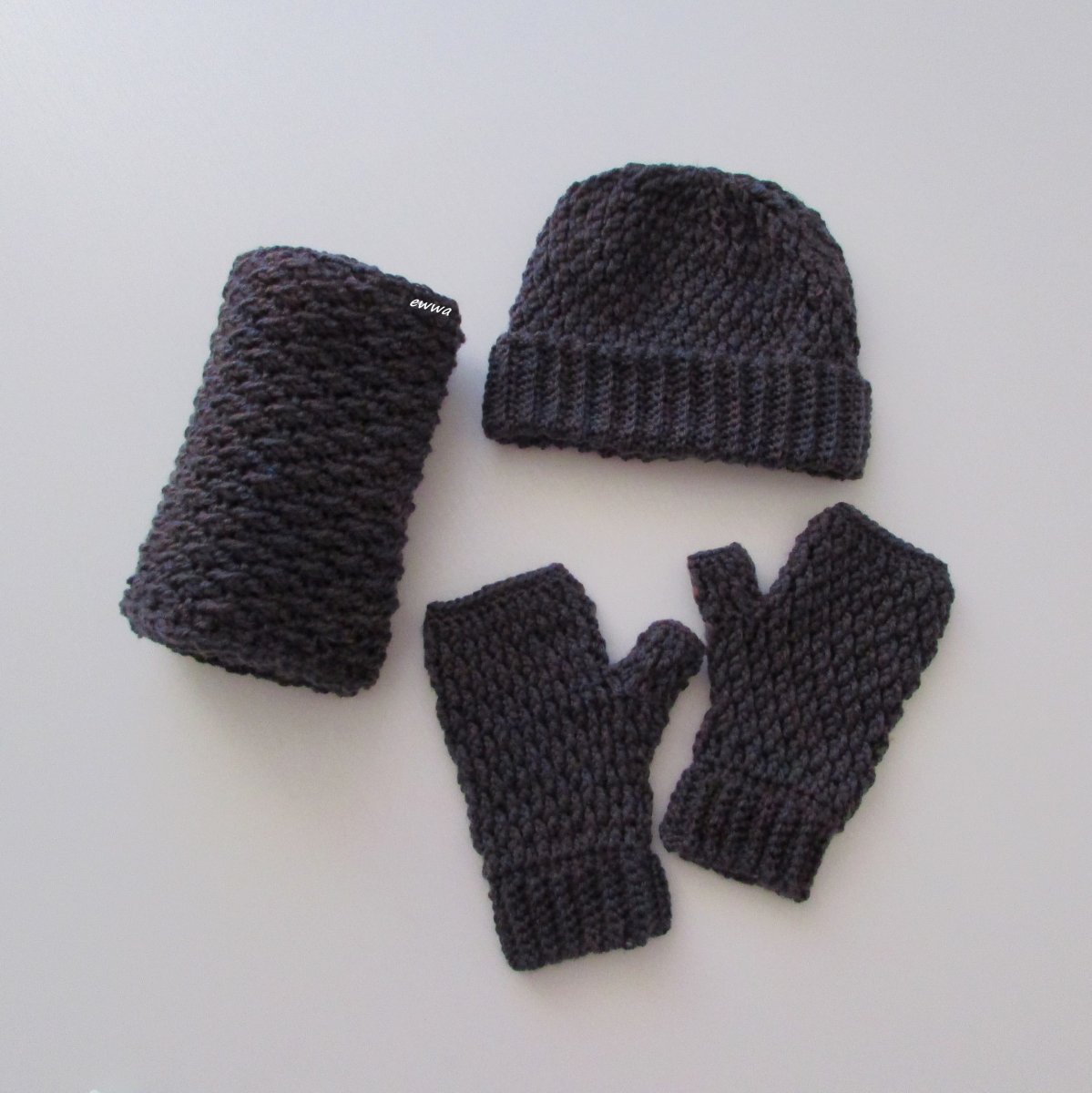 Zimní teplá souprava - čepice + šála + bezprsté rukavice,