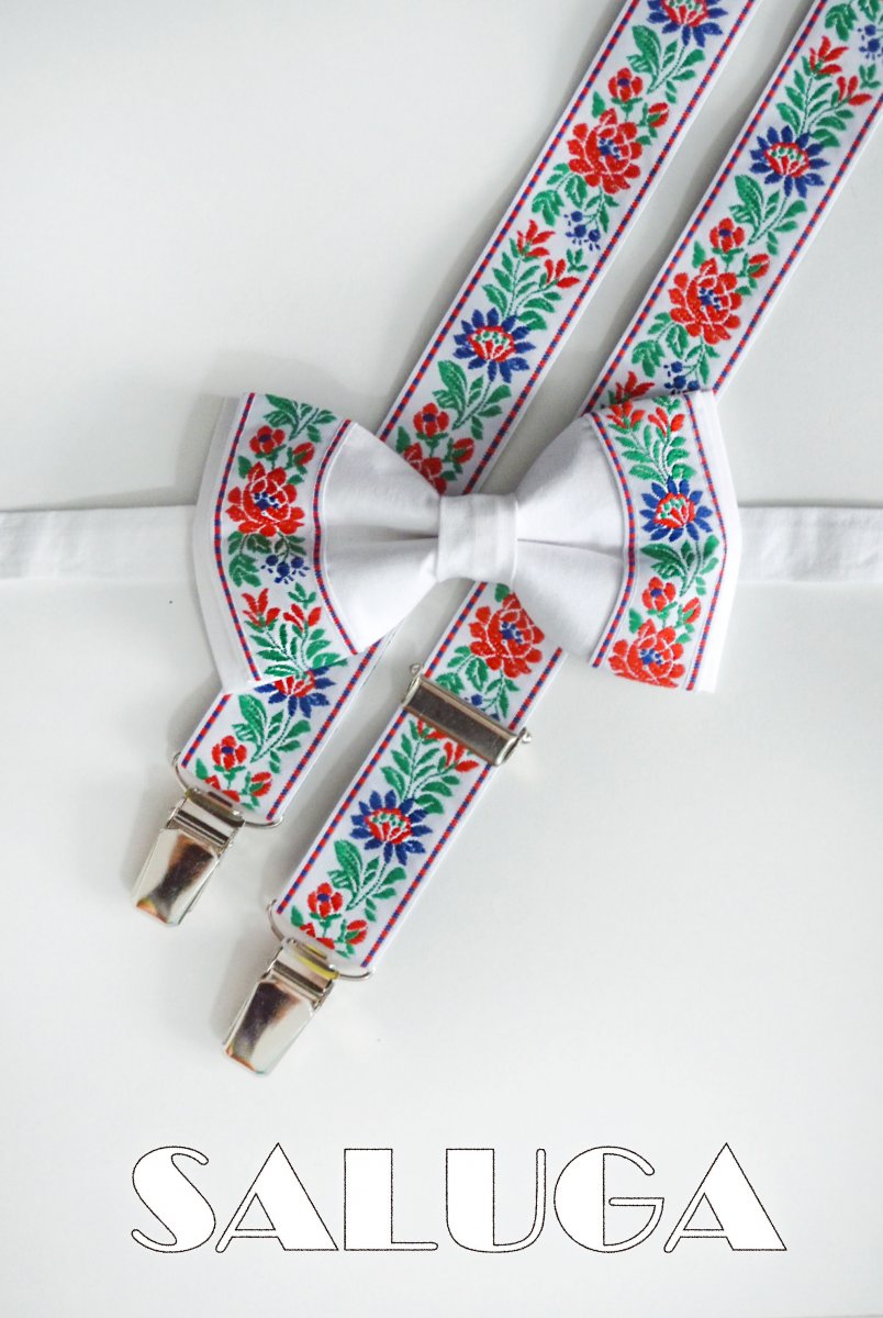 Pánské set motýlek + šle folkový, folklorní,lidový bílý
