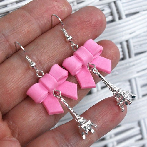 ručně modelovaný šperk z polymerové hmoty, na stříbrných bižuterních afroháčcích,