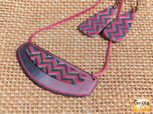 Zavěšeno na ploché růžové kůži se zapínáním na karabinku.