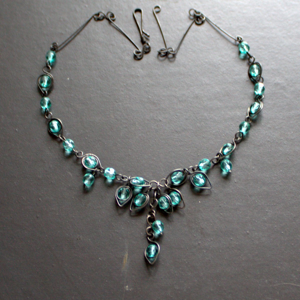Luxusní drátovaný náhrdelník z 0,8 mm žíhaného drátu a a světle modrých rokailových korálků. Velikost korálků 0,6 cm.