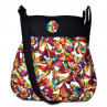 Peněženka ušitá ze zahraniční bavlněné látky, s barevnými motýlky na zeleném podkladu. Peněženka je 5x vyztužena.