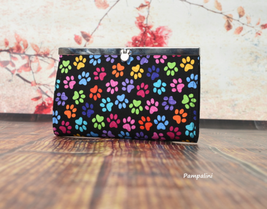 Peněženka z krásné designové látky, pevně vyztužená s kovovým zapínacím rámečkem.