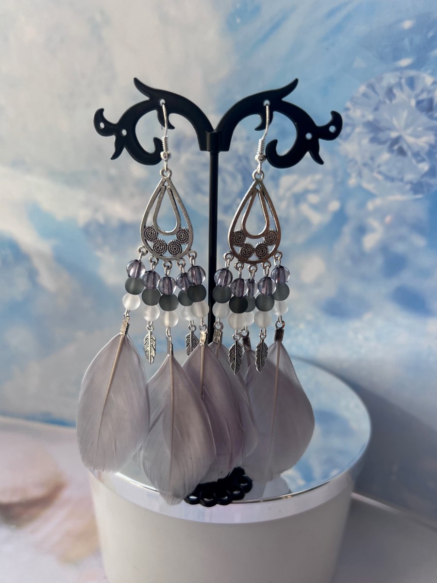 Nepřehlédnutelné "boho" náušnice se zelenými peříčky, korálkami a kovovými komponenty v barvě stříbra. Délka od háčku 12 cm. Háček, ramínko a komponenty v barvě stříbra - běžný kov, gumové zarážky.