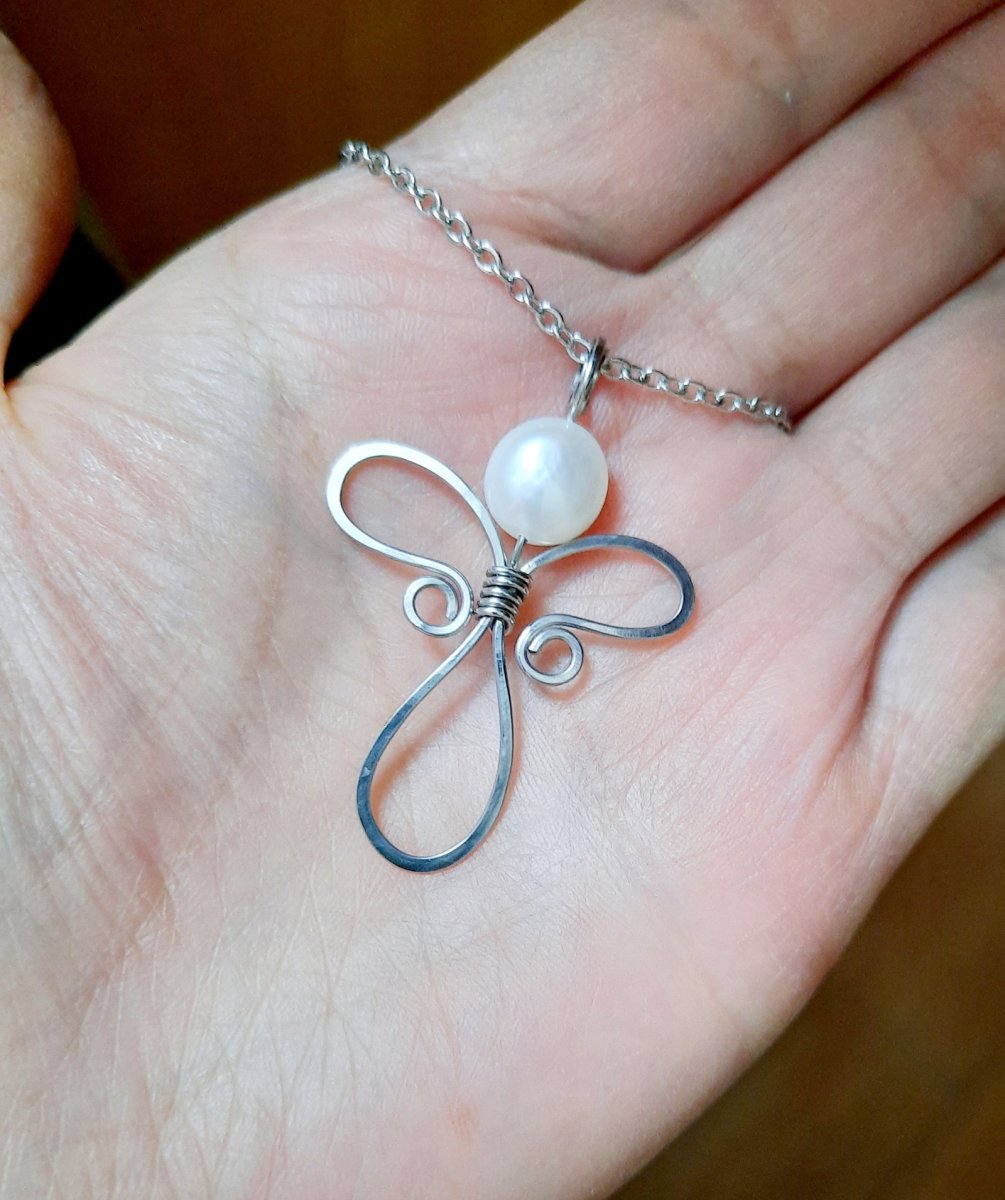 Přívěšek je ručně tepaný z chirurgické oceli ozdobený krásnou bílou říční perlou.