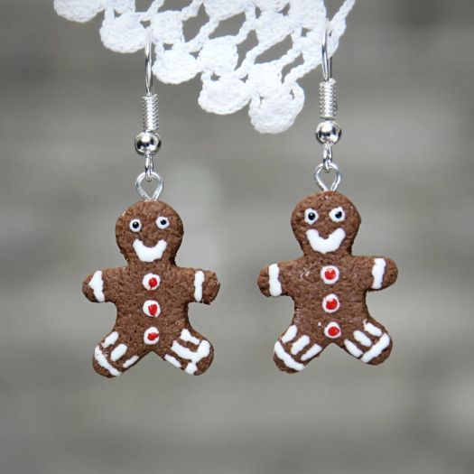 Náušnice s perníčkami z polymerové hmoty (2x1,5cm), délka 4cm vč.háčků.
