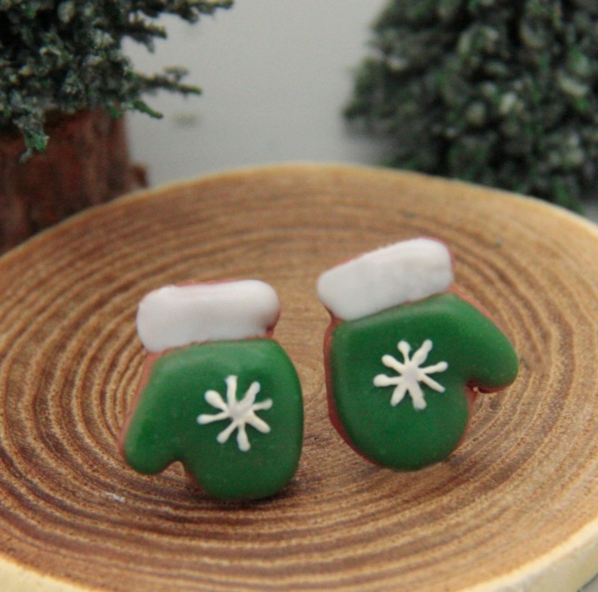 náušnice z polymerové hmoty v podobě perníčků, věrná kopie, zdobeno barevnou polevou a bílým zdobením