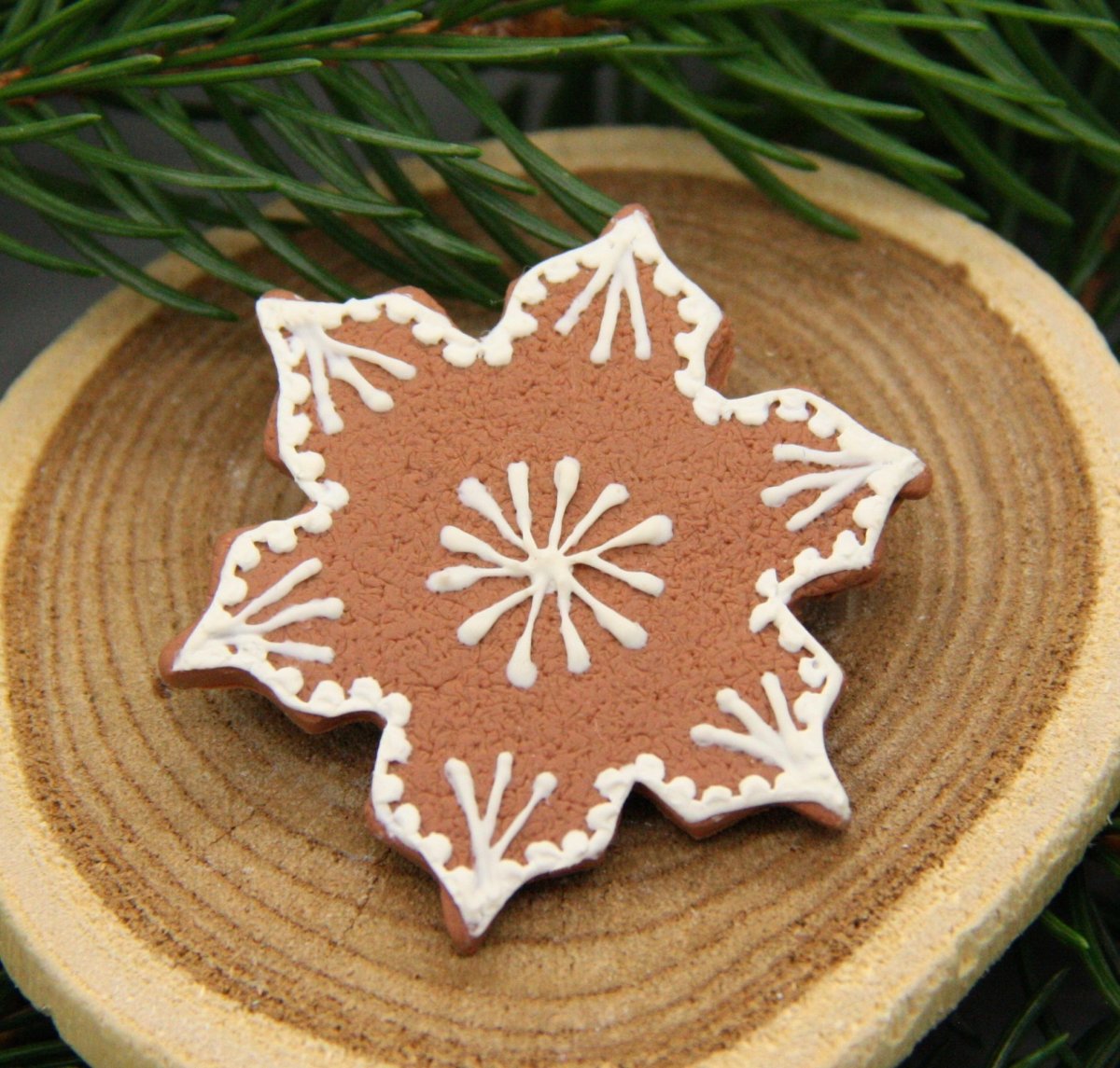 modelovaný šperk z polymerové hmoty, ručně zdobeno bílou polevou, věrná kopie staročeských perníčků..