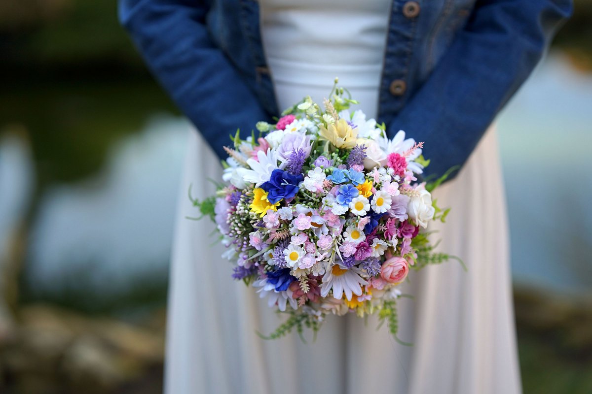 Svatební kytice v pestrých barvách. Kytici berte jako ukázku a inspiraci, ráda Vám uvážu podle Vašich představ.