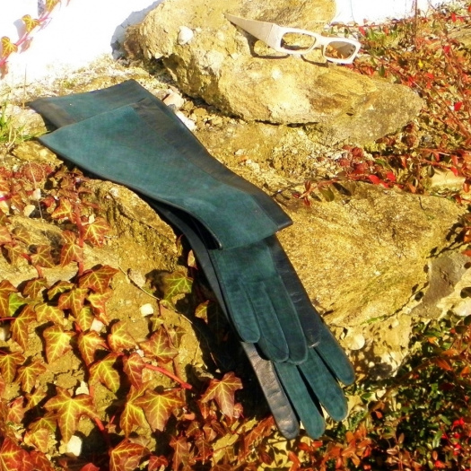 Dámské kožené rukavice nad loket s hedvábnou podšívkou.