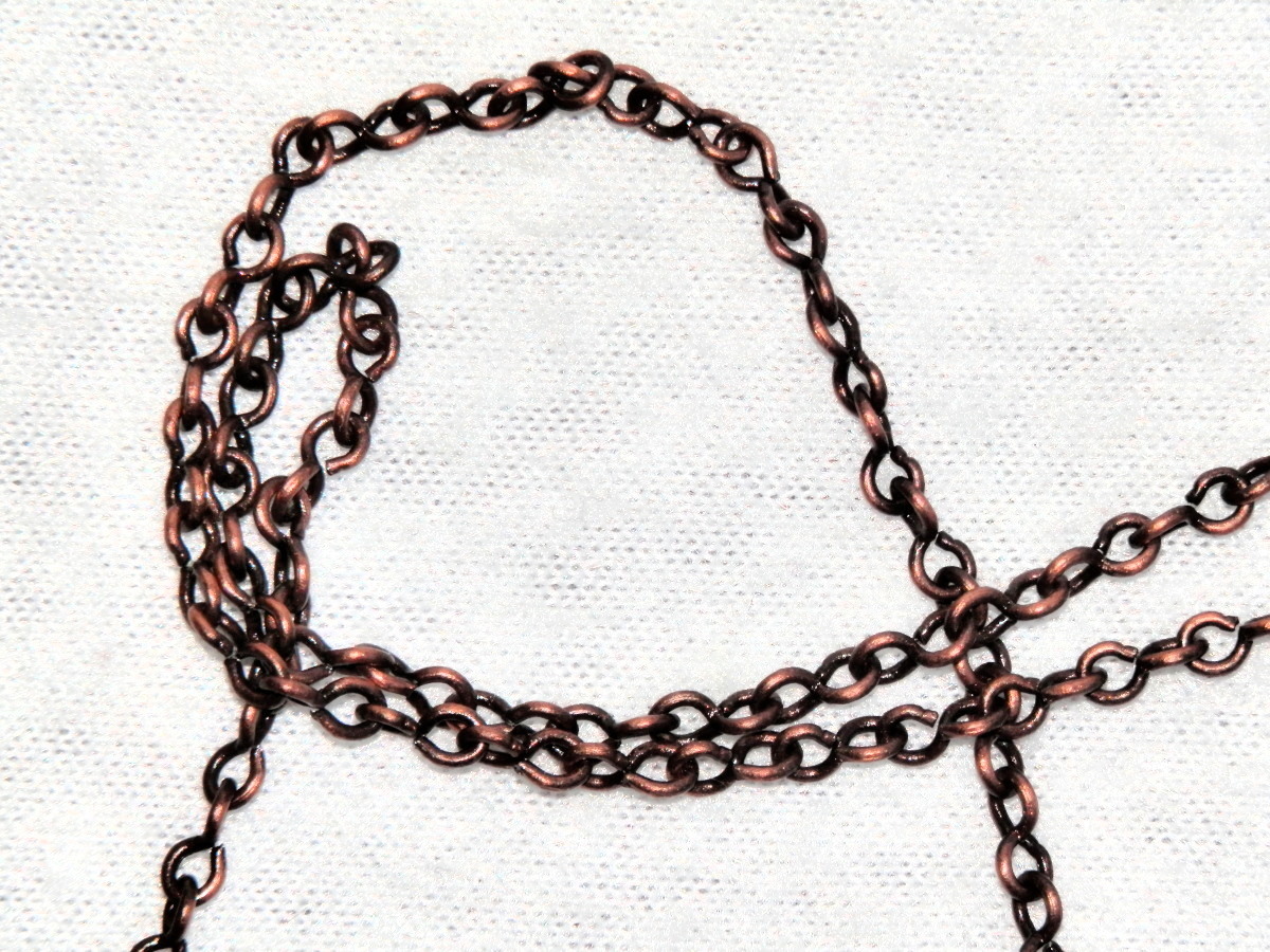 Zavěšeno na bižuterním řetízku staroměděné barvy, zapínání na karabinku, délka náhrdelníku je 50 cm.