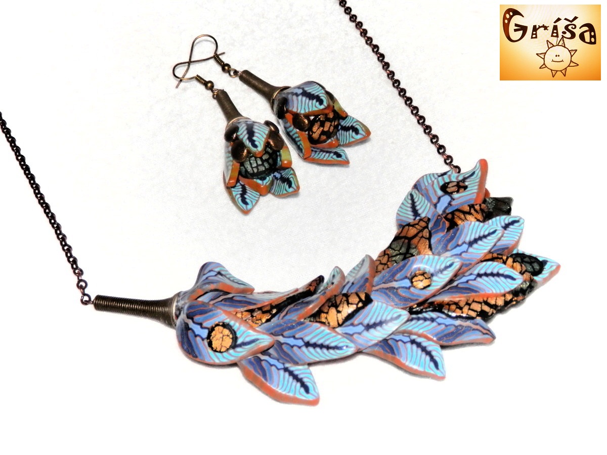 Náušnice i náhrdelníček jsou ručně modelovány.