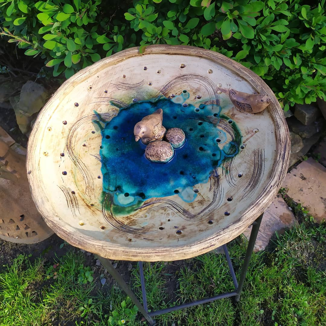 Páleno z šamotové hlíny na vyšší teplotu. průměr cca 37 cm.Lze položit na terasu,do zahrady ,na skalku. Snese suchý mráz, ale led ne. Na zimu je lepší tento kousek schovat, aby vám dělal radost i příští rok.