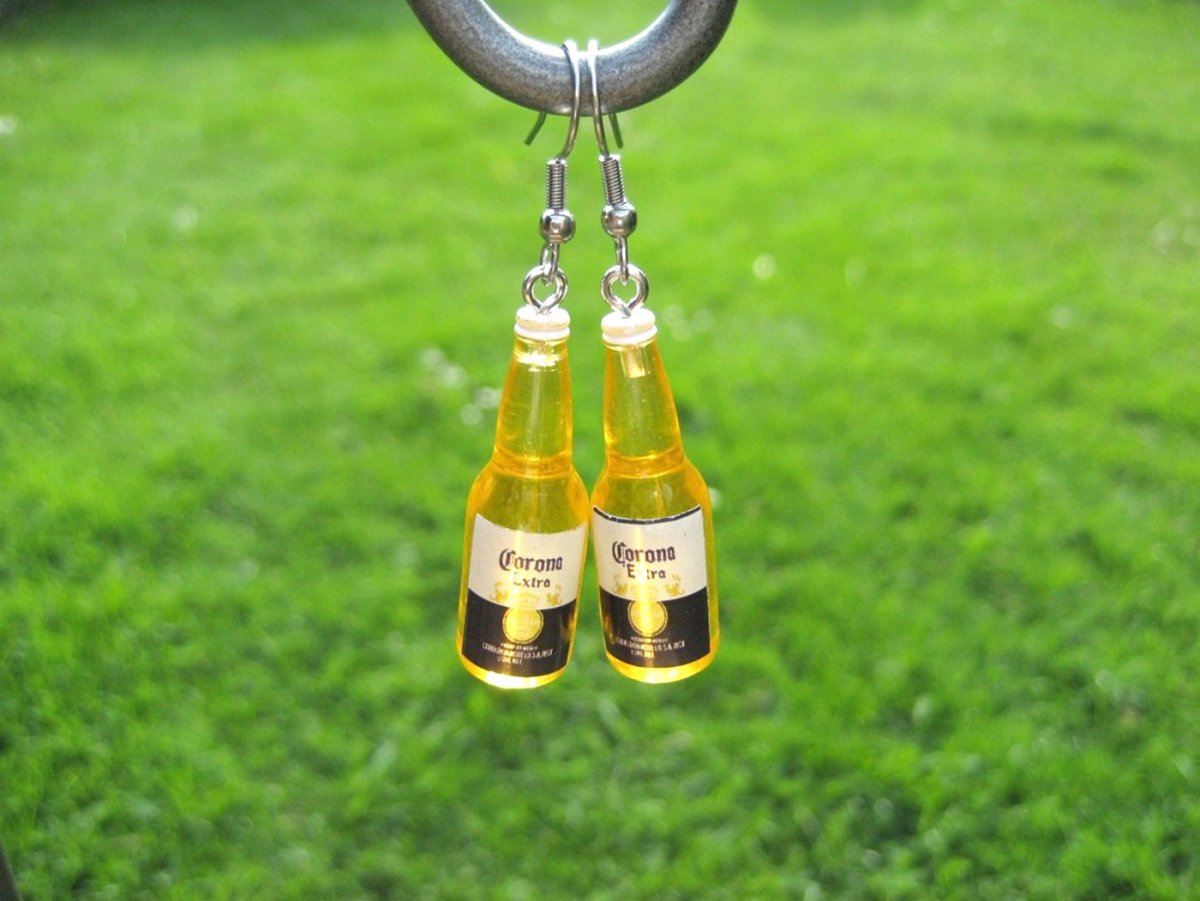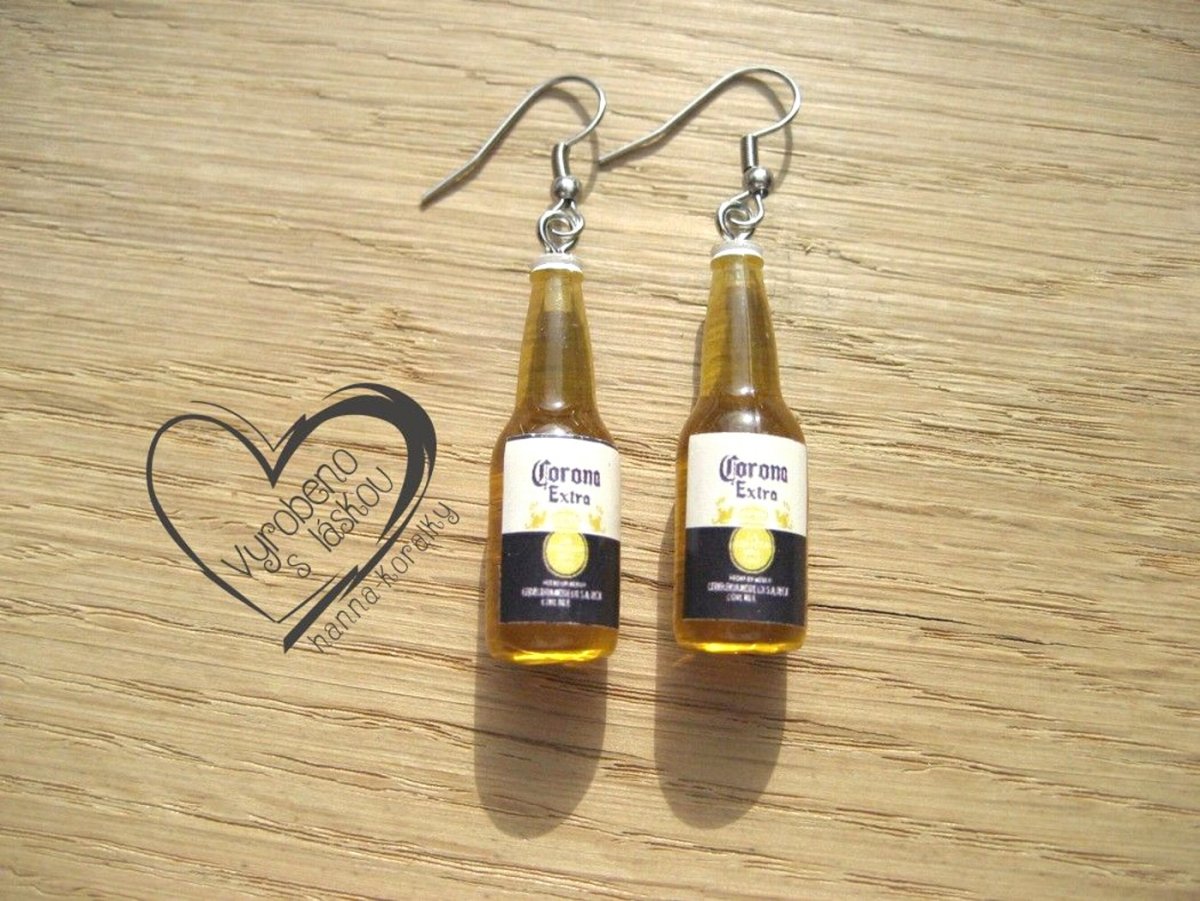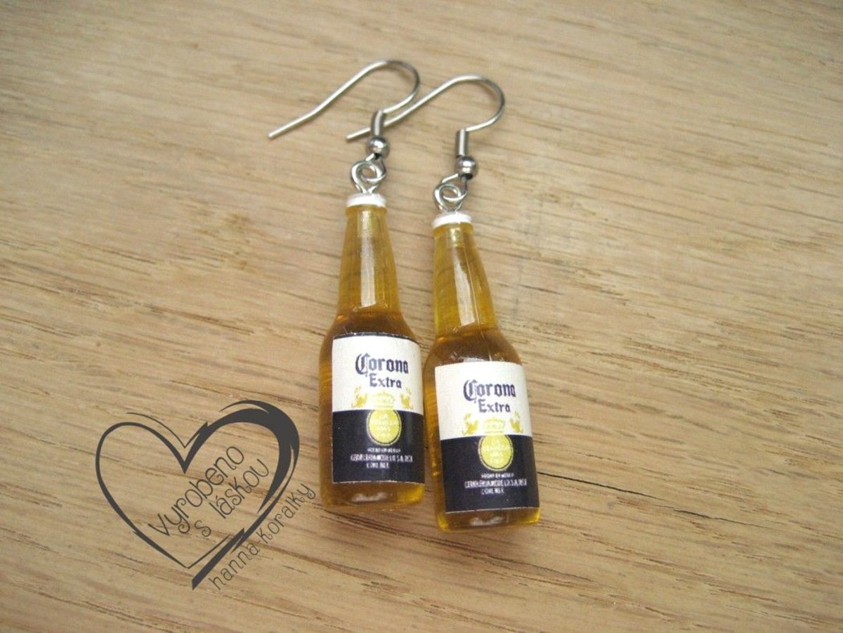 Vtipné náušnice z pryskyřice - mini láhev žluté pivko - výška motivu 3,5 cm + očko a náušnicový háček z nerez oceli